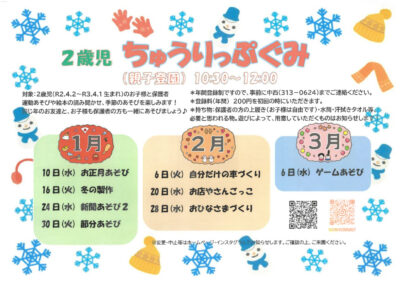 2023.12.01 あそぼう会 ちゅーりっぷ組 ちゅうりっぷ・ふたば 3学期のお知らせ🍊 ちゅうりっぷぐみさん・ふたばぐみさんの3学期の予定です! 少しずつ寒くなってきましたが3学期も元気にあそびましょうね🐤 まだまだ一緒にあそびたいおともだちを募集しています!! お気軽にお電話ください🎵