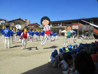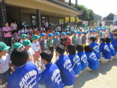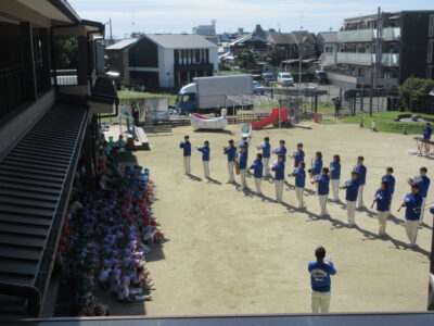 最後に年長組さんがお礼のプレゼントを渡して、「ありがとう♡」を伝えると、お兄さん、お姉さんたちも嬉しそう😄近くで楽器を見せてもらったり、少しだけお話もできて、ちょっぴり仲良くなれたね。