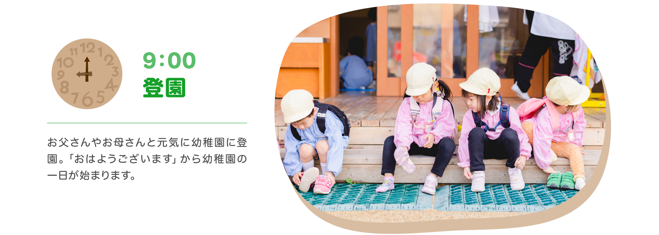 - ●お子様が幼稚園の生活に慣れるまでは、通常の保育時間とは異なり、2時間のみなど短縮した時間でのお預かりとなります。